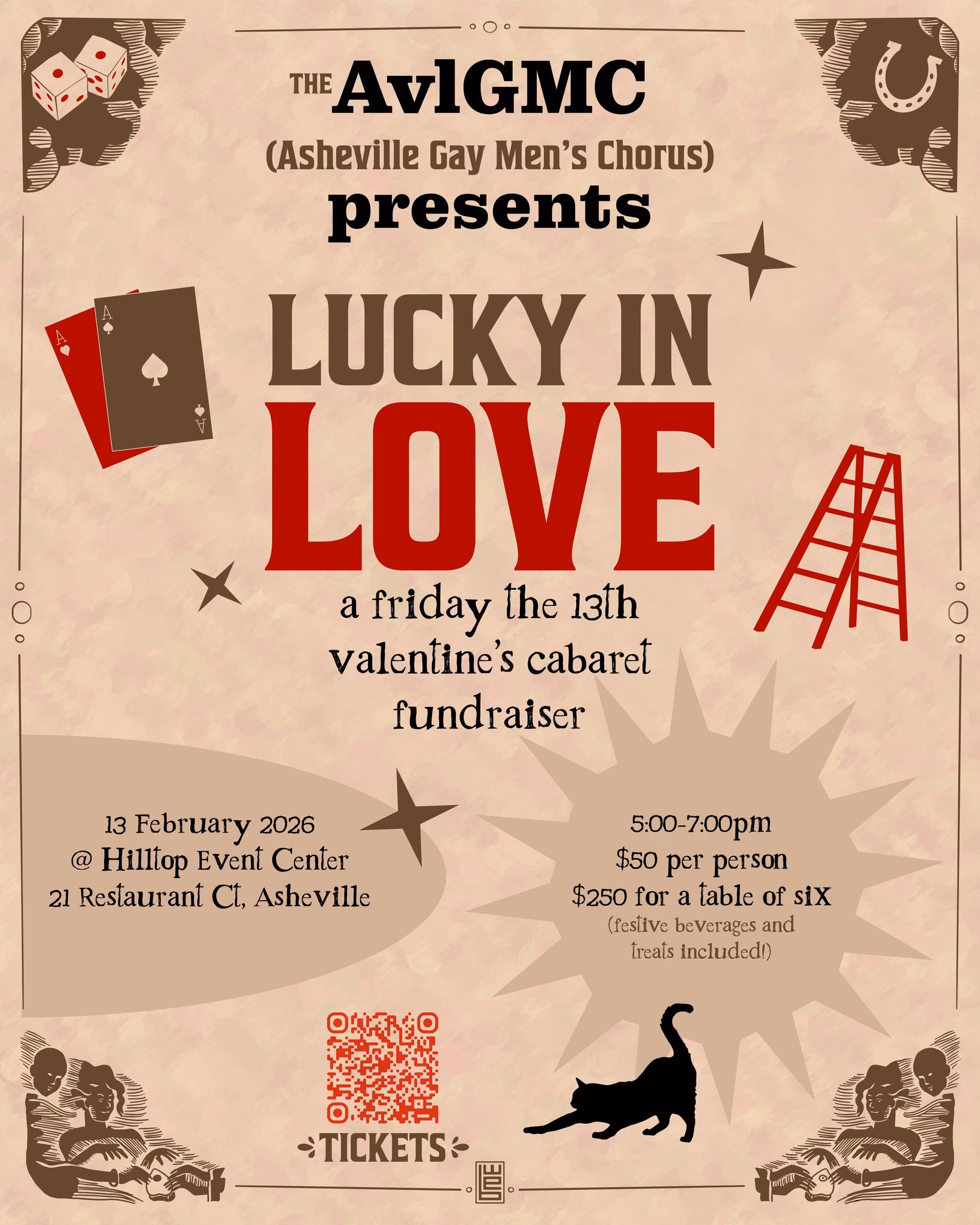 This special cabaret is more than a celebration of love—it’s a fundraiser to help send the Asheville Gay Men’s Chorus to GALA Festival 2028!